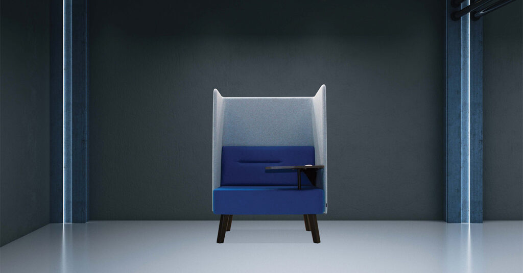 Designed with convenience and autonomy in mind, Brix Solo is a striking solo work booth that offers a perfect escape from the everyday office setting. High acoustic surrounds wrap around the user, cocooning them in their own private remote space, while the wooden tablet fitted with a power module allows them to stay connected. Choose between tubular steel or wooden legs, and from a wide range of modern upholstery options.