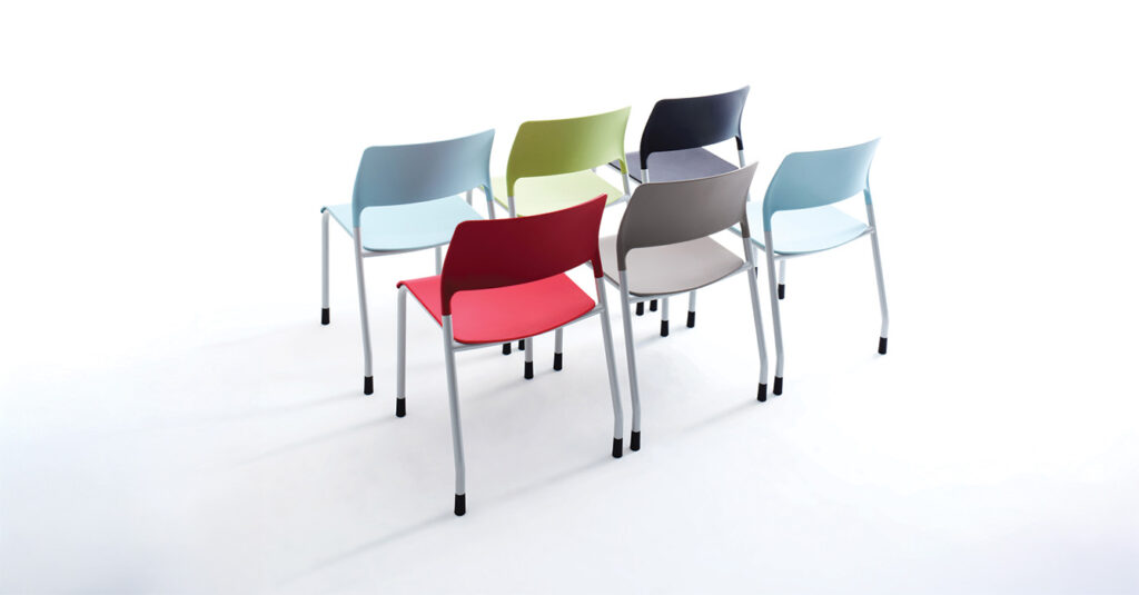 A multipurpose stacking four legged chair with a simplicity of design and a simple sleek profile. The pearlescent silver frame finish is matched with soft pastel plastic seat and back colours to create a fresh and modern style to compliment your workspace.