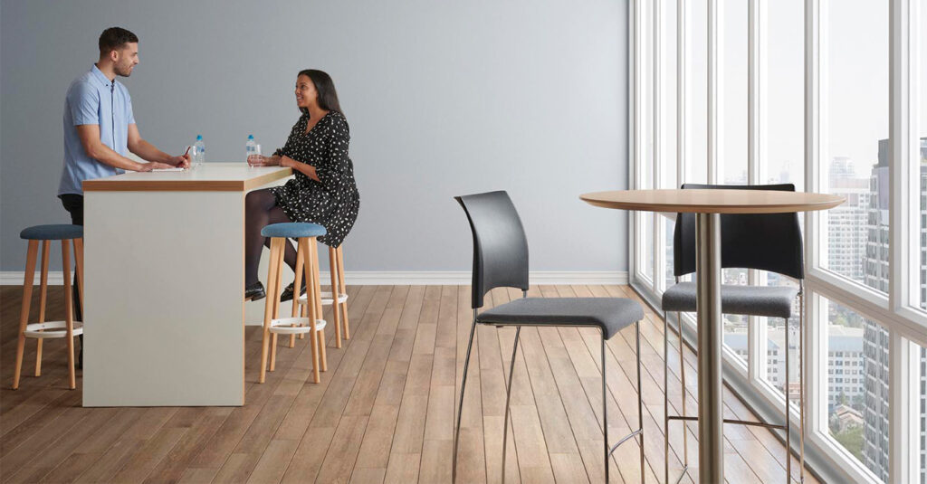 The chairs stack together very closely, allowing large numbers to be stacked onto the special trolley and relocated or stored until your area becomes the next hive of activity. Plastic feet protect floors and other chairs when stacked.